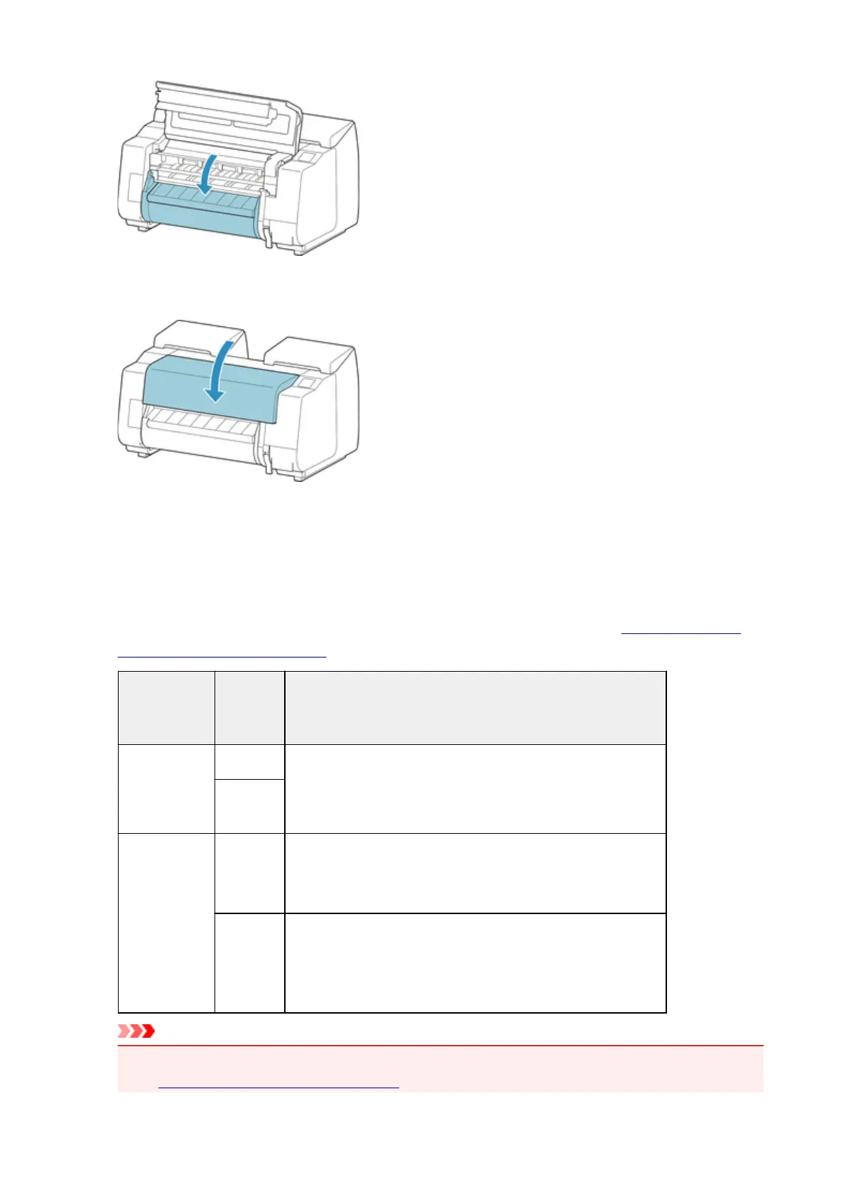 Disable Printed A menu for selecting the media type appears on the touch