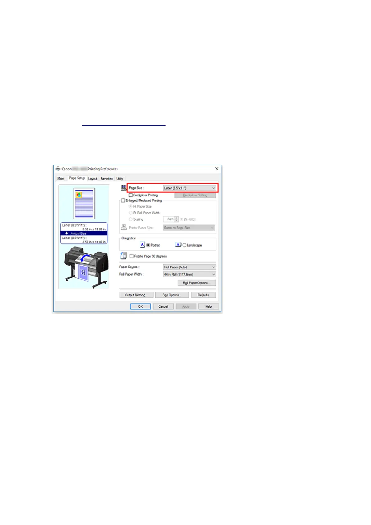 When you are not able to specify them with the application software, the procedure for selecting a page size