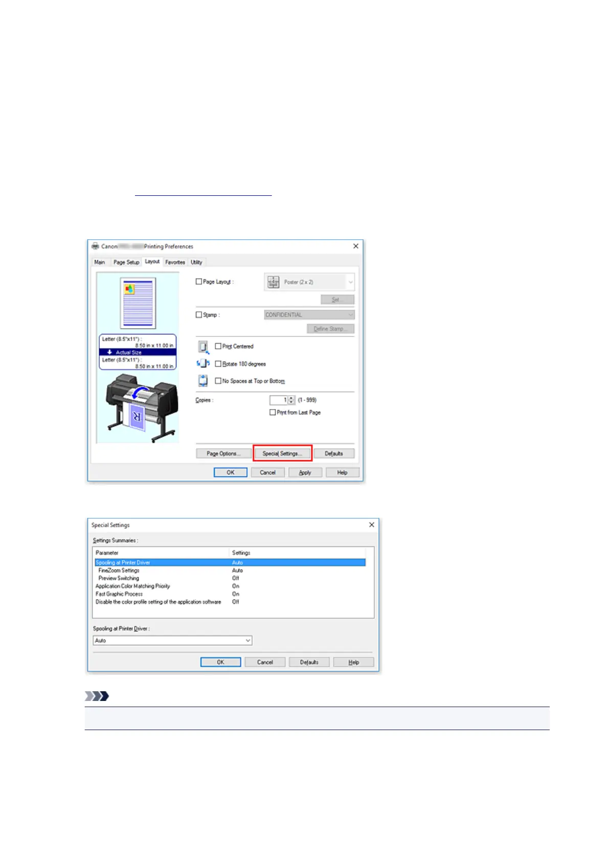 Click Special Settings... on the Layout tab