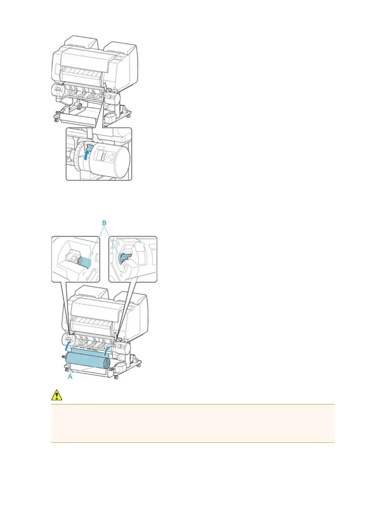 Be careful not to pinch your fingers between the Roll Holder shaft and the guide grooves (B) when