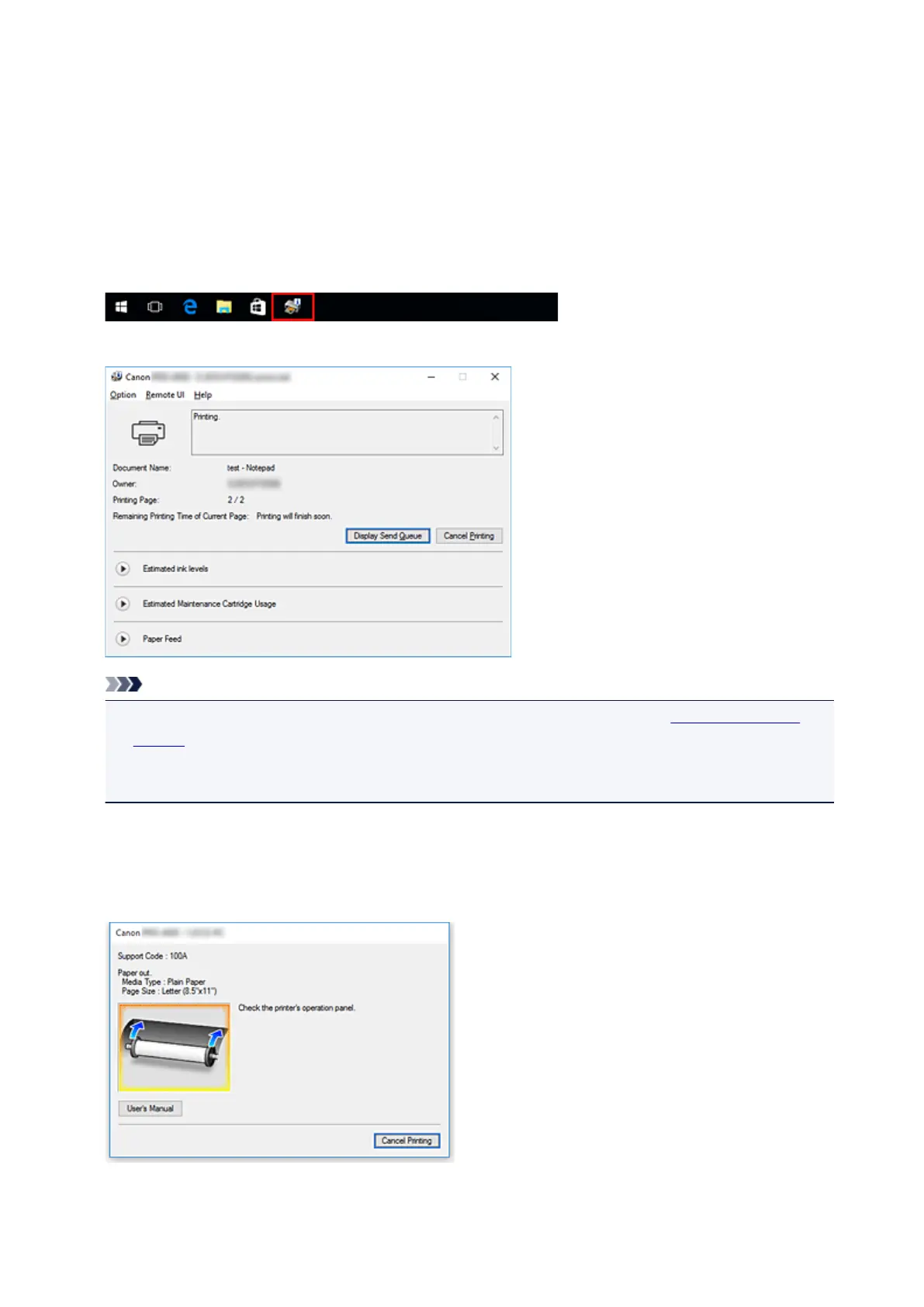 The Canon IJ Status Monitor launches automatically when print data is sent to the printer. When