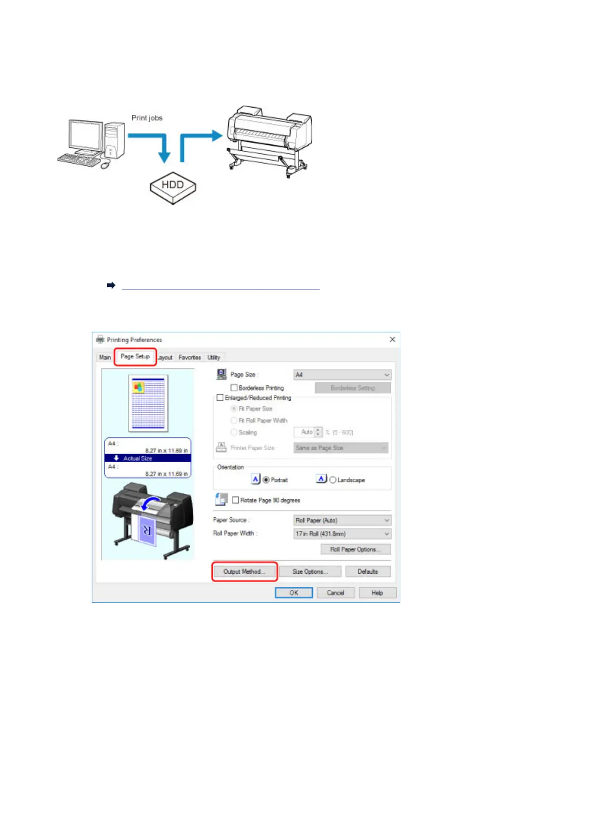 Click Output Method to display Output Method dialog box.
