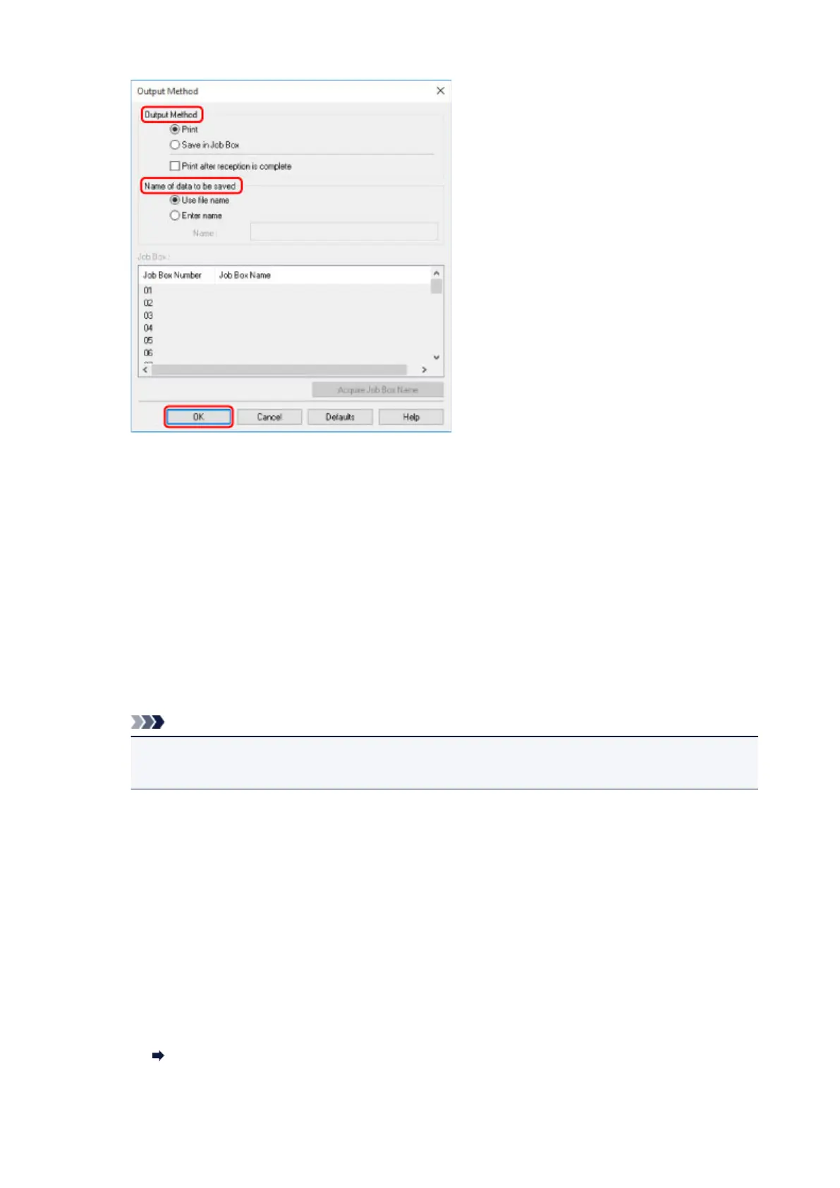 • Click Acquire Job Box Name to display personal box names in the Job Box list, as acquired