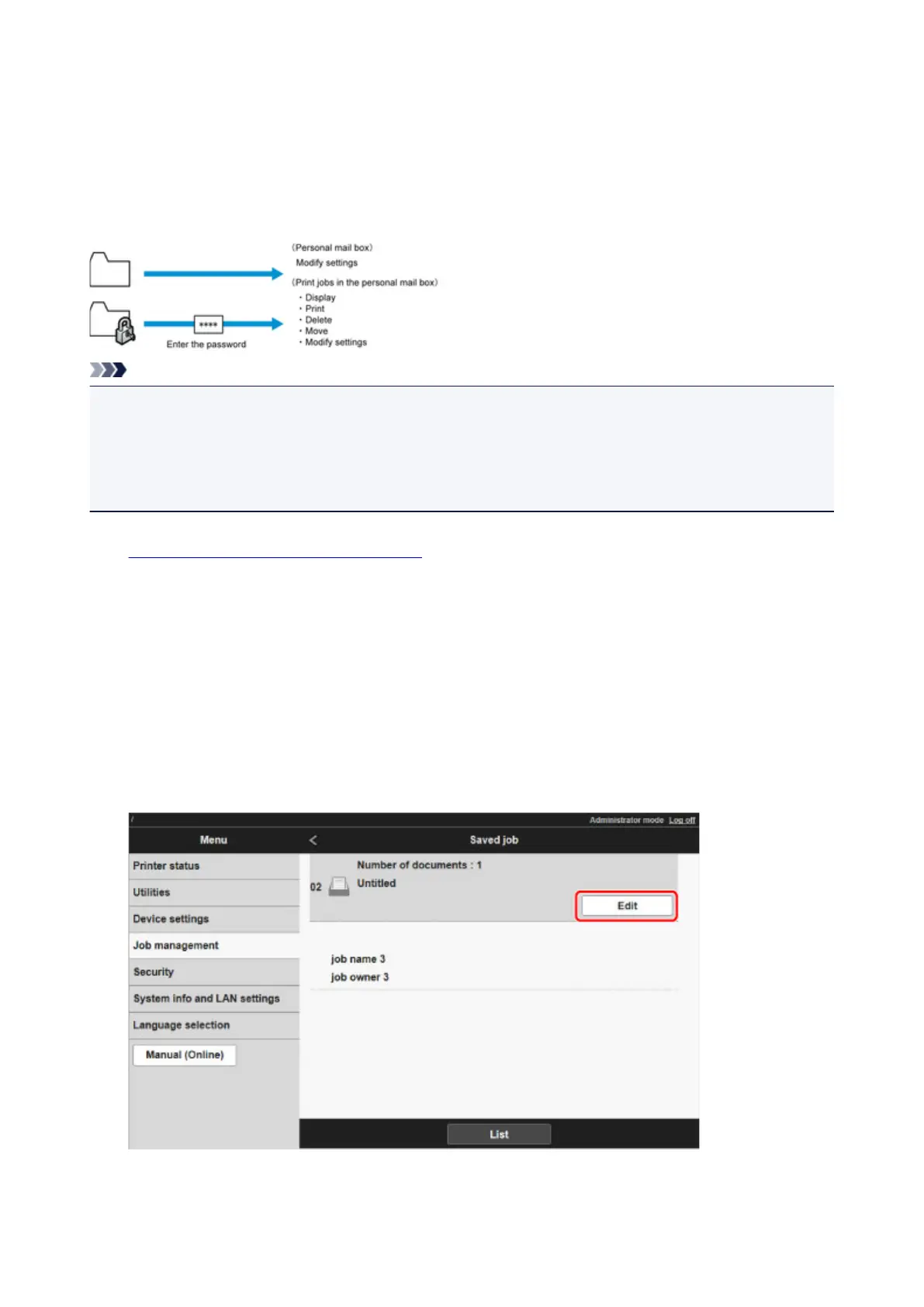 • Even if you have set passwords, they are not required to access personal boxes in Administrator Mode