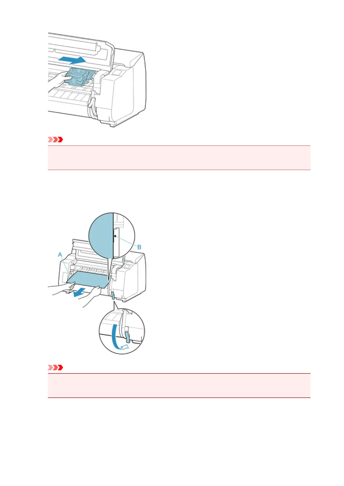 the paper alignment line (B), and lower the release lever.