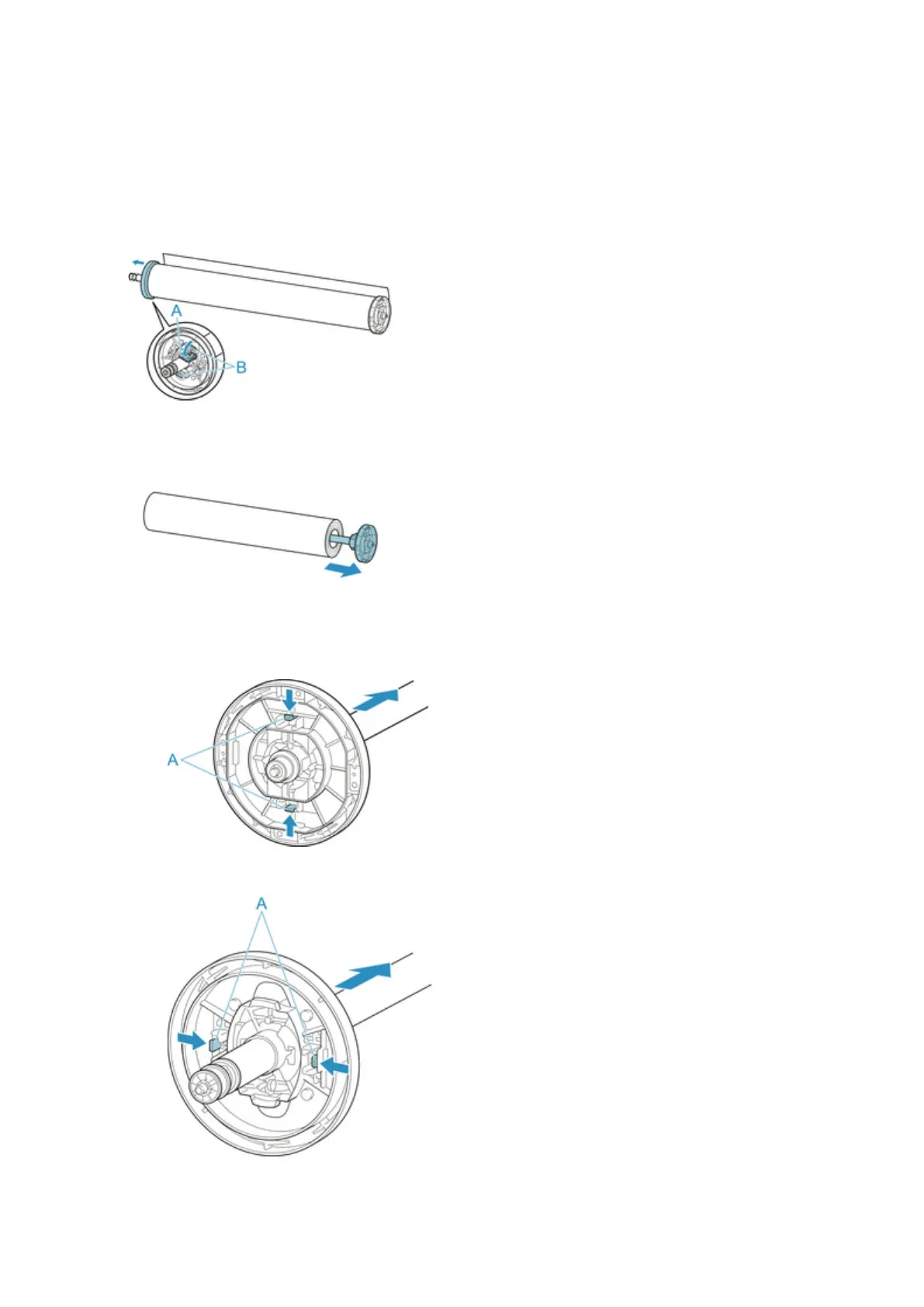 To remove 3-Inch Paper Core Attachment, press tabs (A) inward and remove attachment.