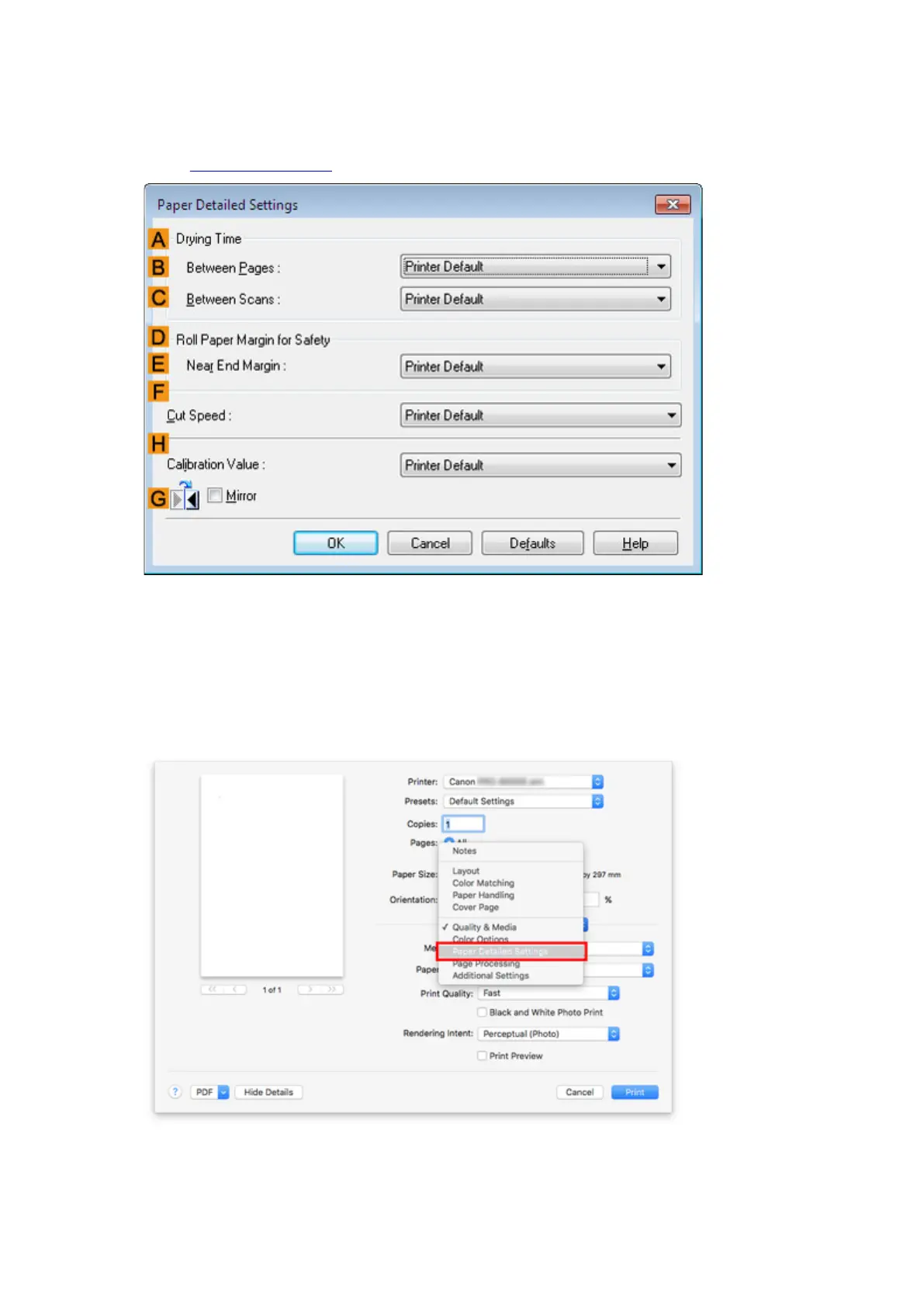 3. In the Paper Detailed Settings dialog box displayed next, select the desired values from