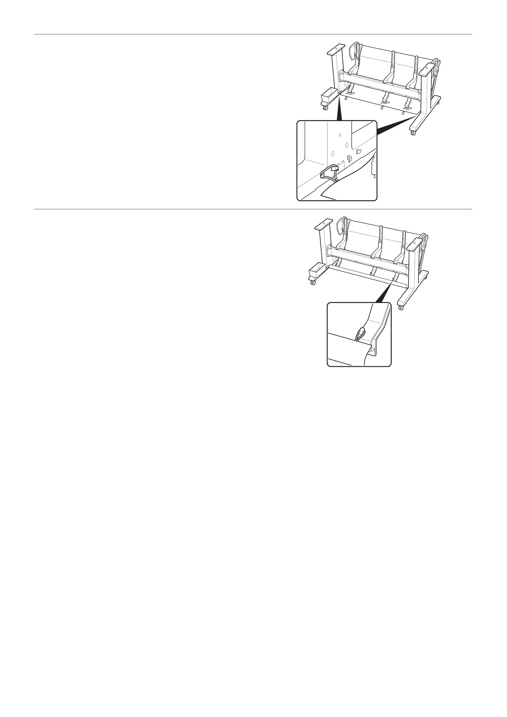 Attach the strings on the rear to the hooks on the paper guides. 3 strings on the rear are
