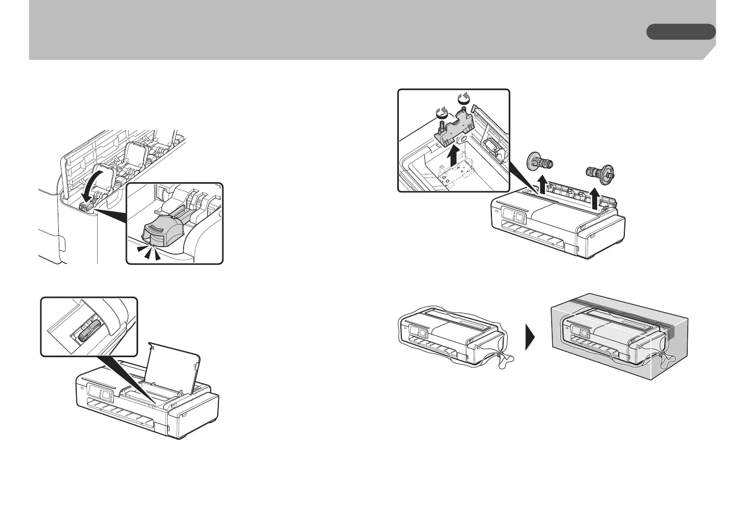 Verifique se o suporte do rolo e o suporte do recipiente do rolo foram removidos.