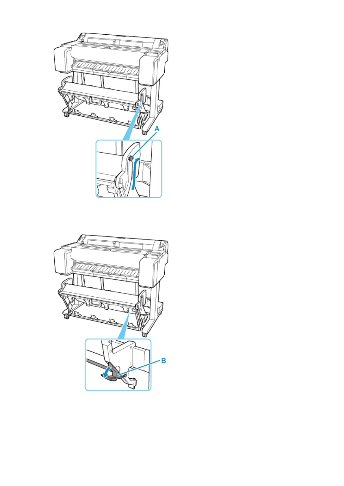 When using 24-inch or A1 (portrait) roll paper, pull out the Adjustable Stopper (B).