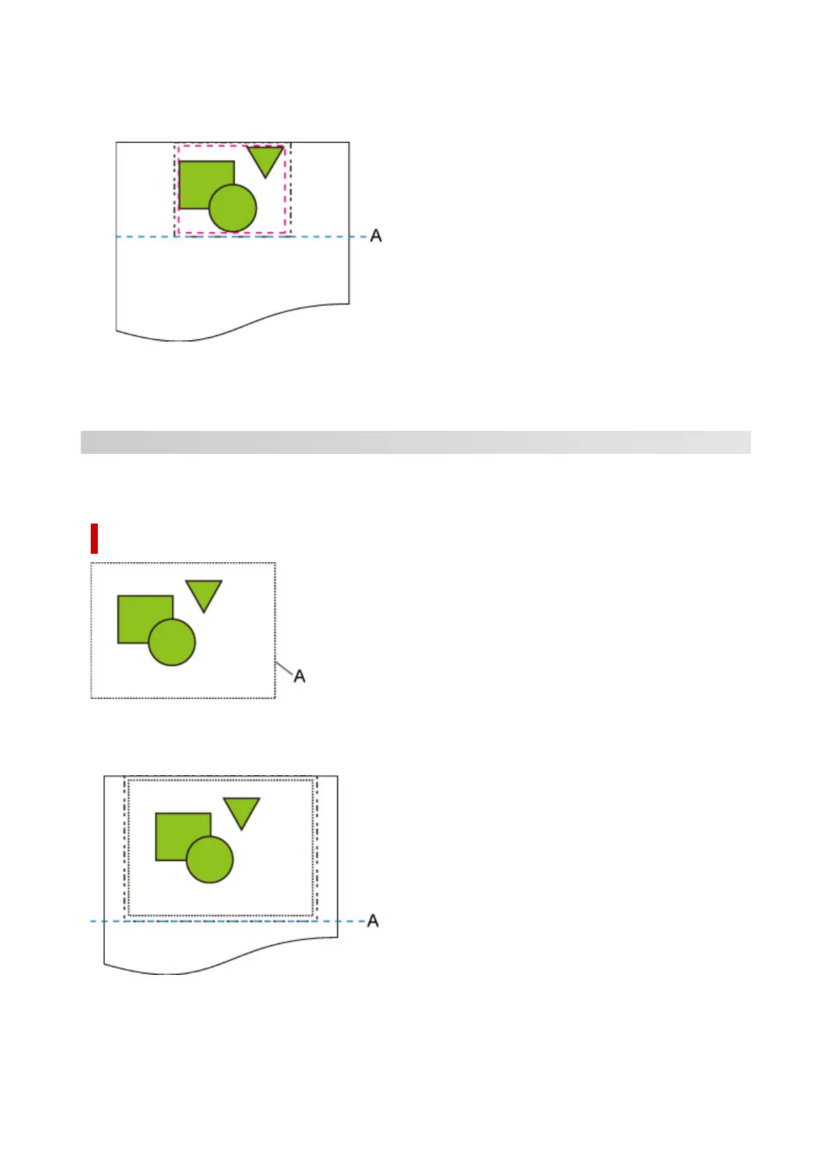The image drawing range determined based on the Detect image size setting is printed in the center of the