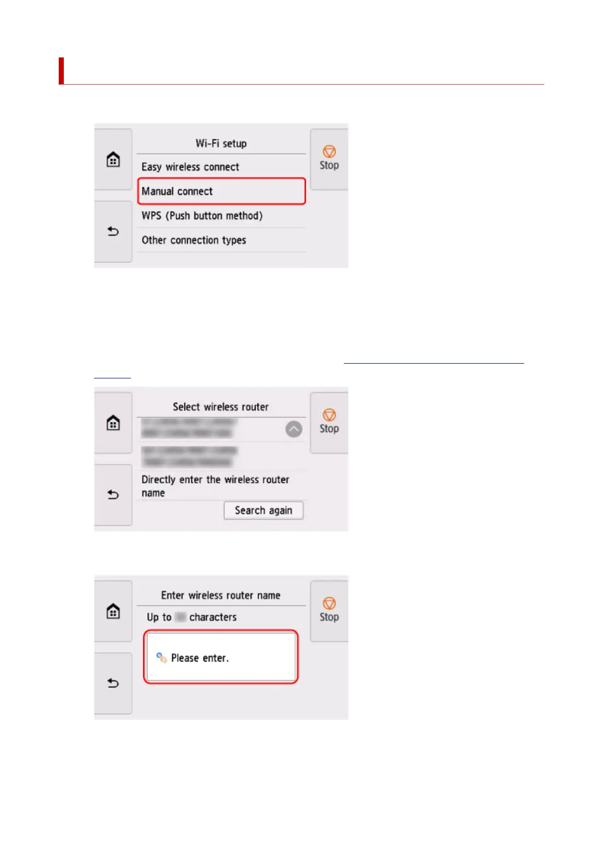 If you select [Directly enter the wireless router name], proceed to step 3 and continue with the settings.