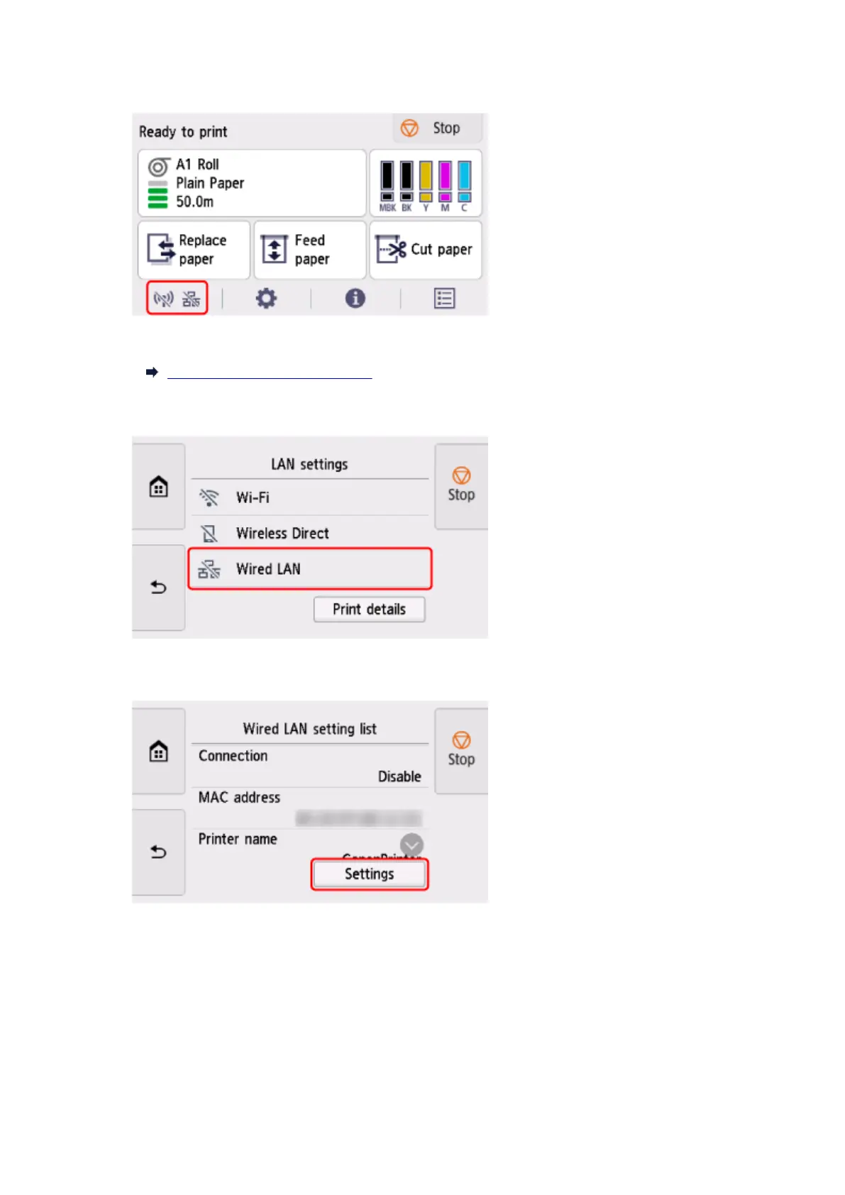 Depending on the current LAN status, the icon displayed on the button may differ.