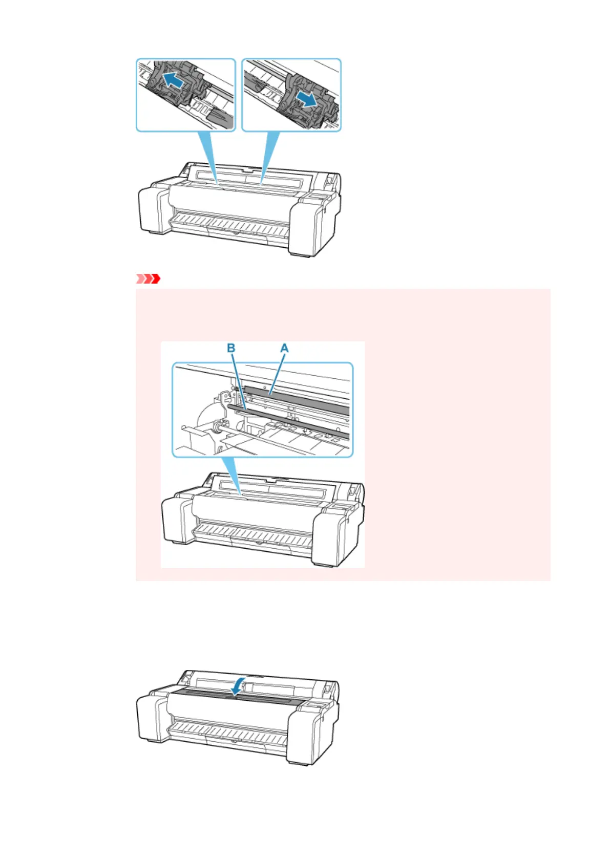 Do not touch the linear scale (A) or carriage shaft (B). Touching these may cause the