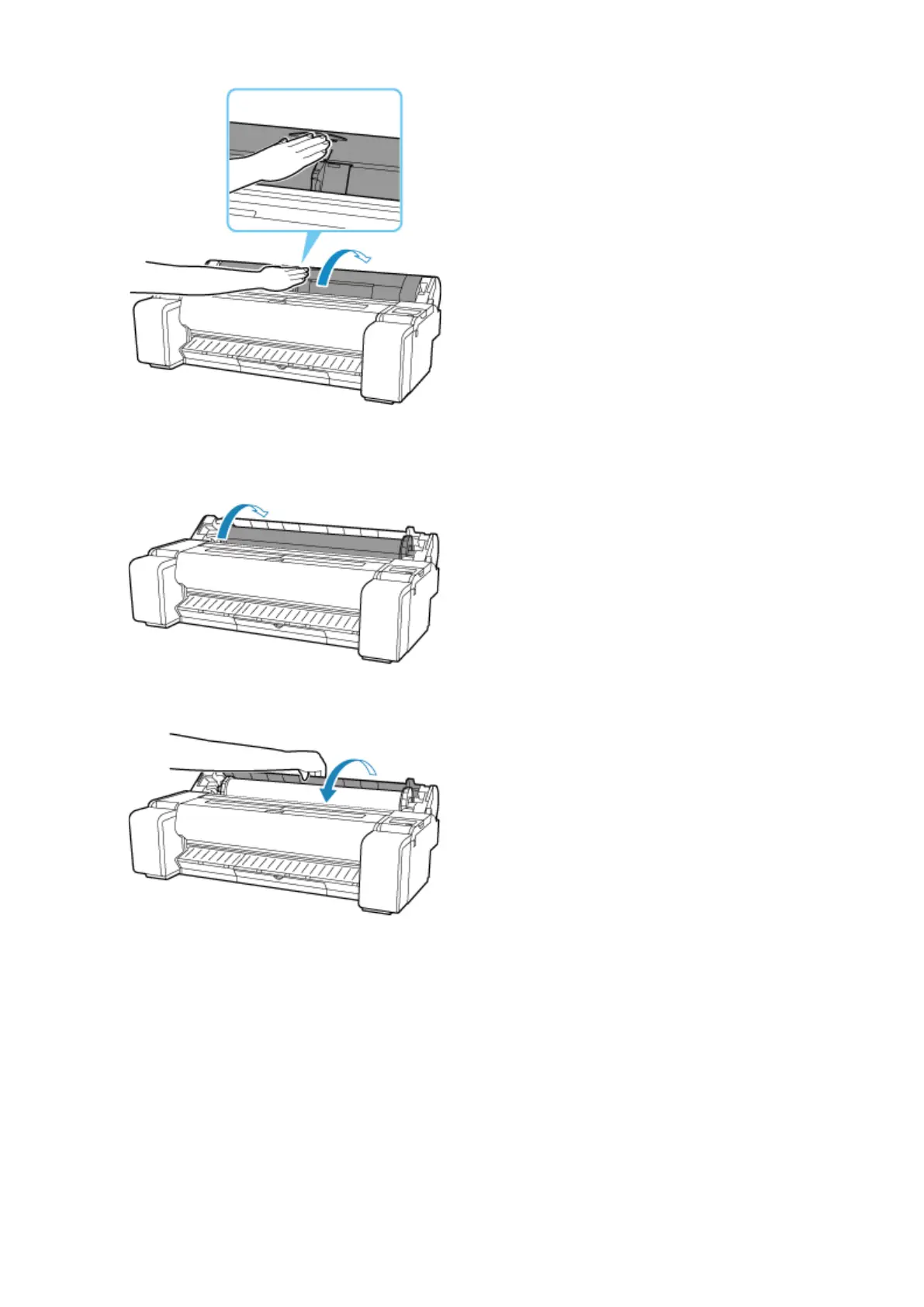 4. Holding it at the positions indicated, close roll paper cover.4.