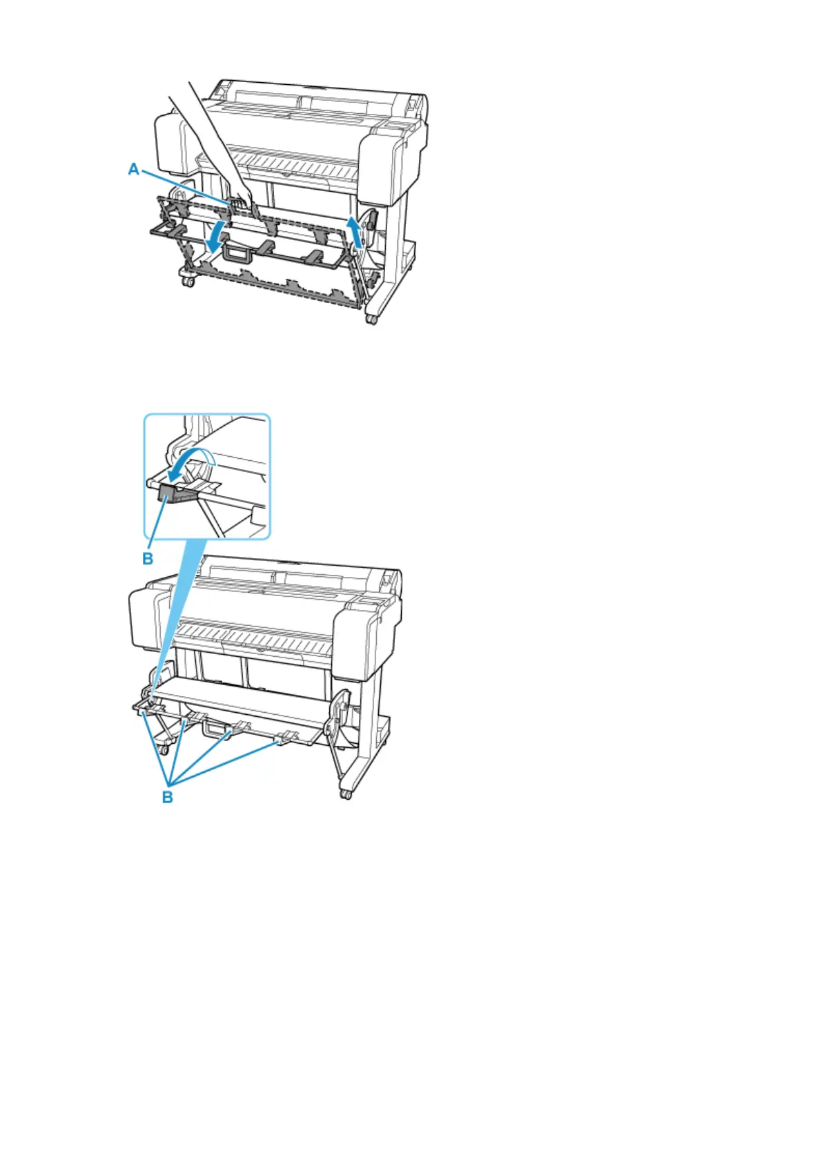 Push the Basket Ejection Guides (B) closed until it clicks into place.