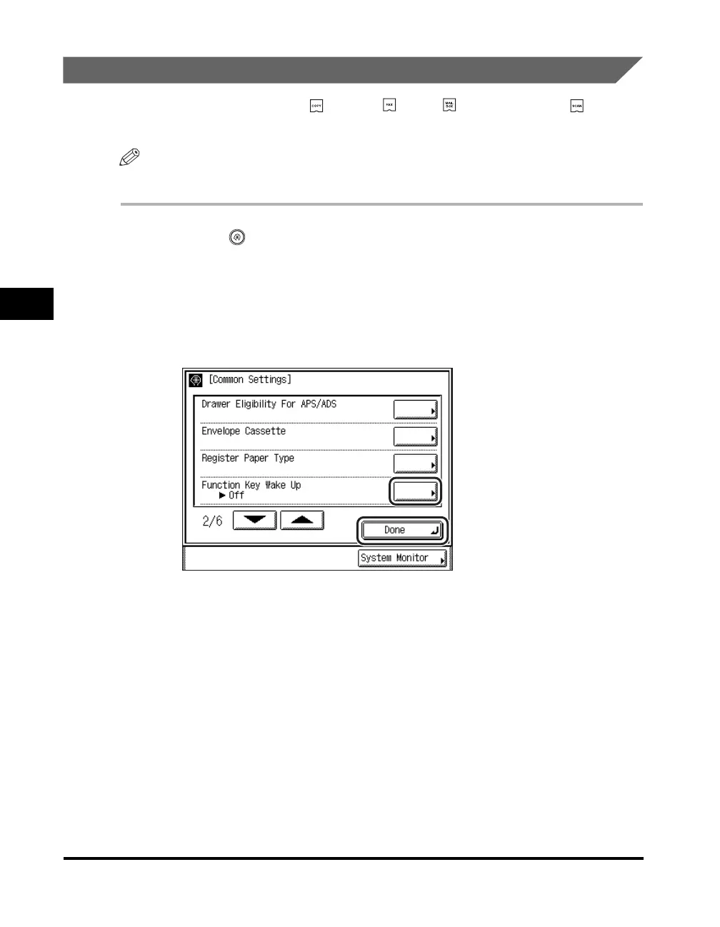 Press [▼] or [▲] until [Function Key Wake Up] appears ➞