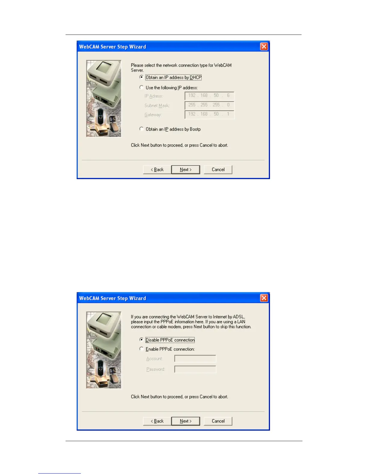 WebCAM (Refer to Appendix C for an explanation of IP Addresses)
