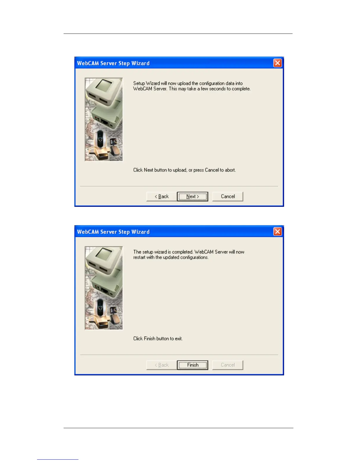 11. Click “Next >” to save and restart WebCAM with the new configurations.
