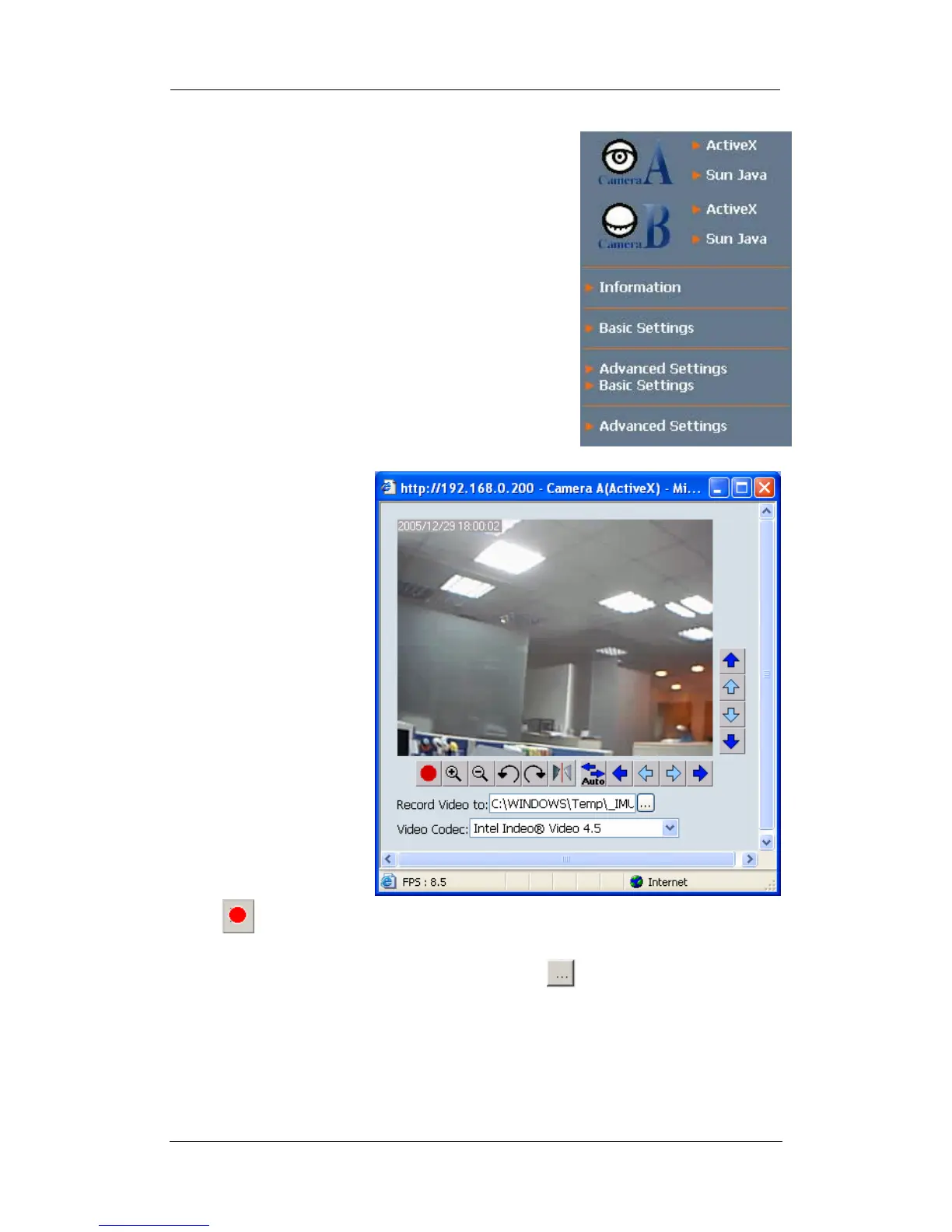 Click on either “ActiveX” or “Sun Java” from Camera A