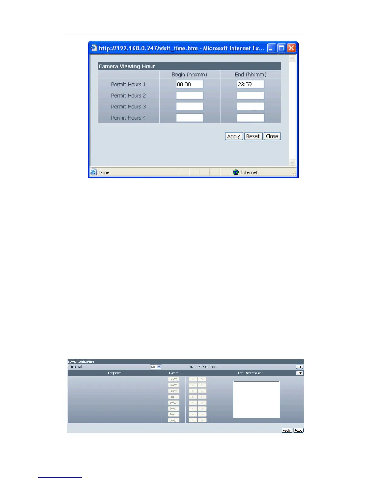 This section determines the type of event an email is sent by WebCAM. WebCAM