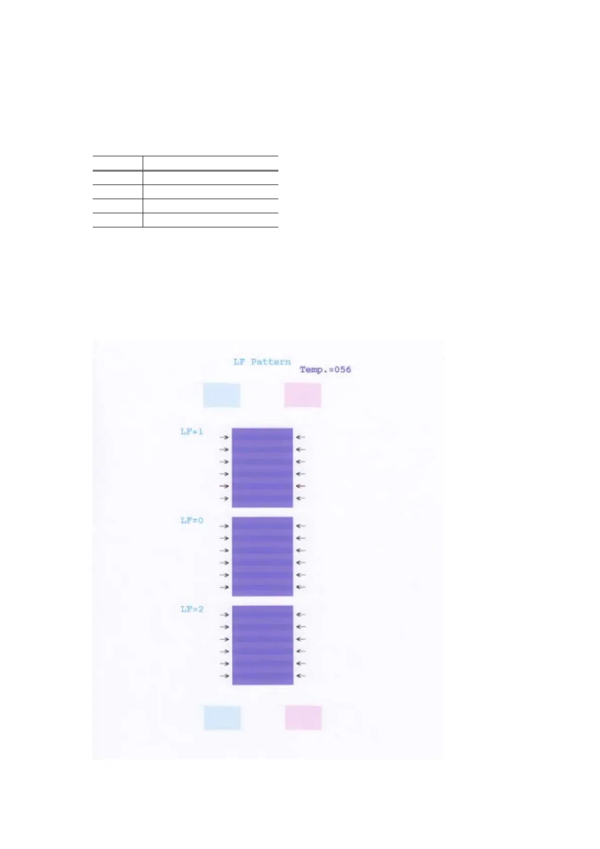 Details: Print the LF correction pattern on a sheet of paper. Select the Pattern No. (0 to 2) in which