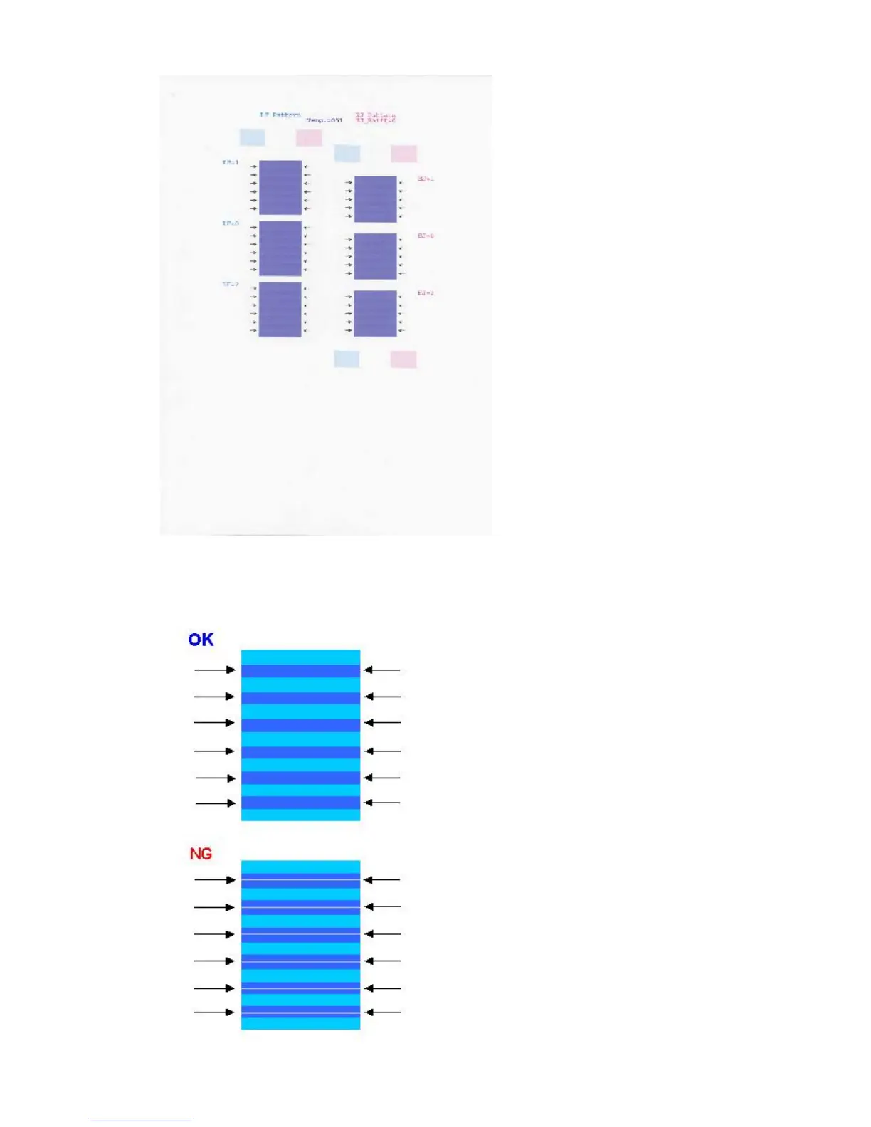 3) In the printout, select the Pattern No. in which streaks or lines are the least noticeable, press the