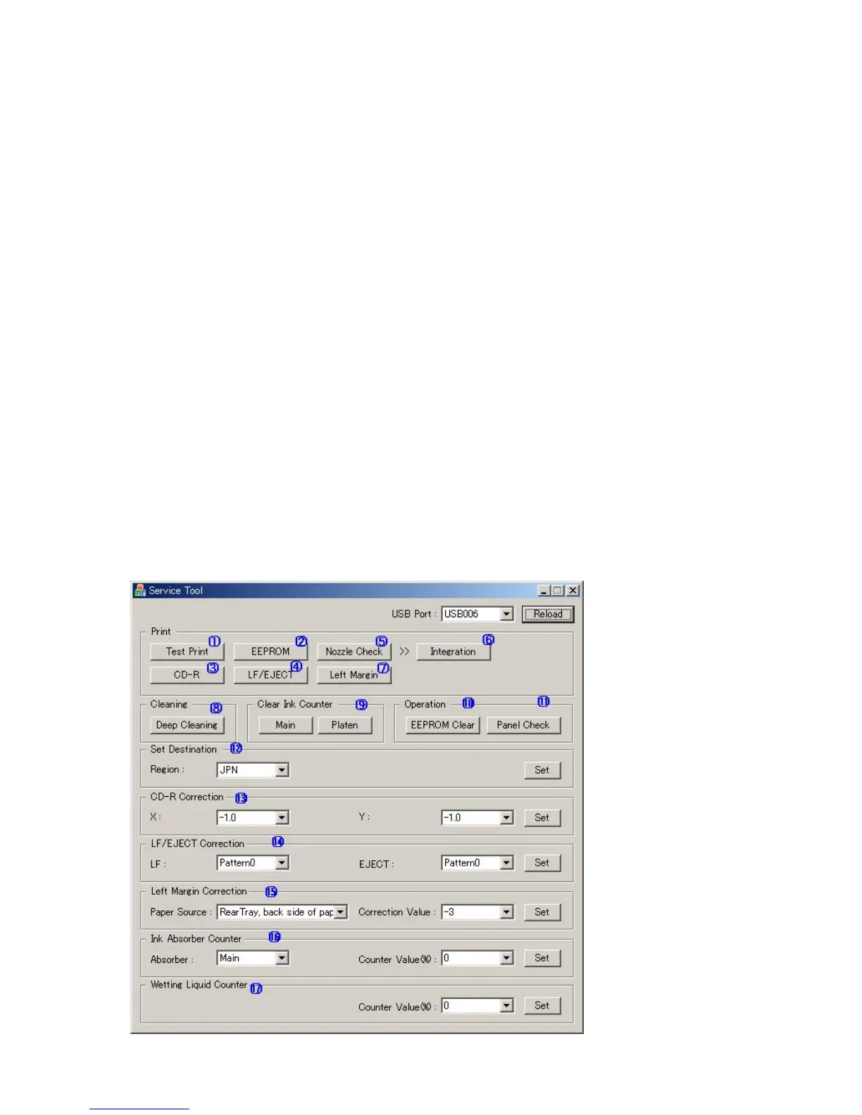 i. When a button is clicked in the Service Tool dialog box, that function is performed. During