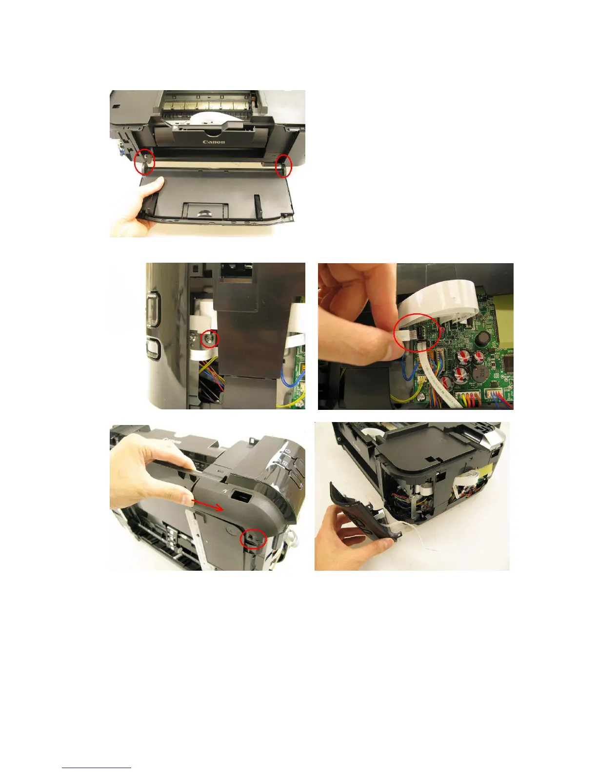< While slightly warping the center of the paper output tray downward, release the left and right