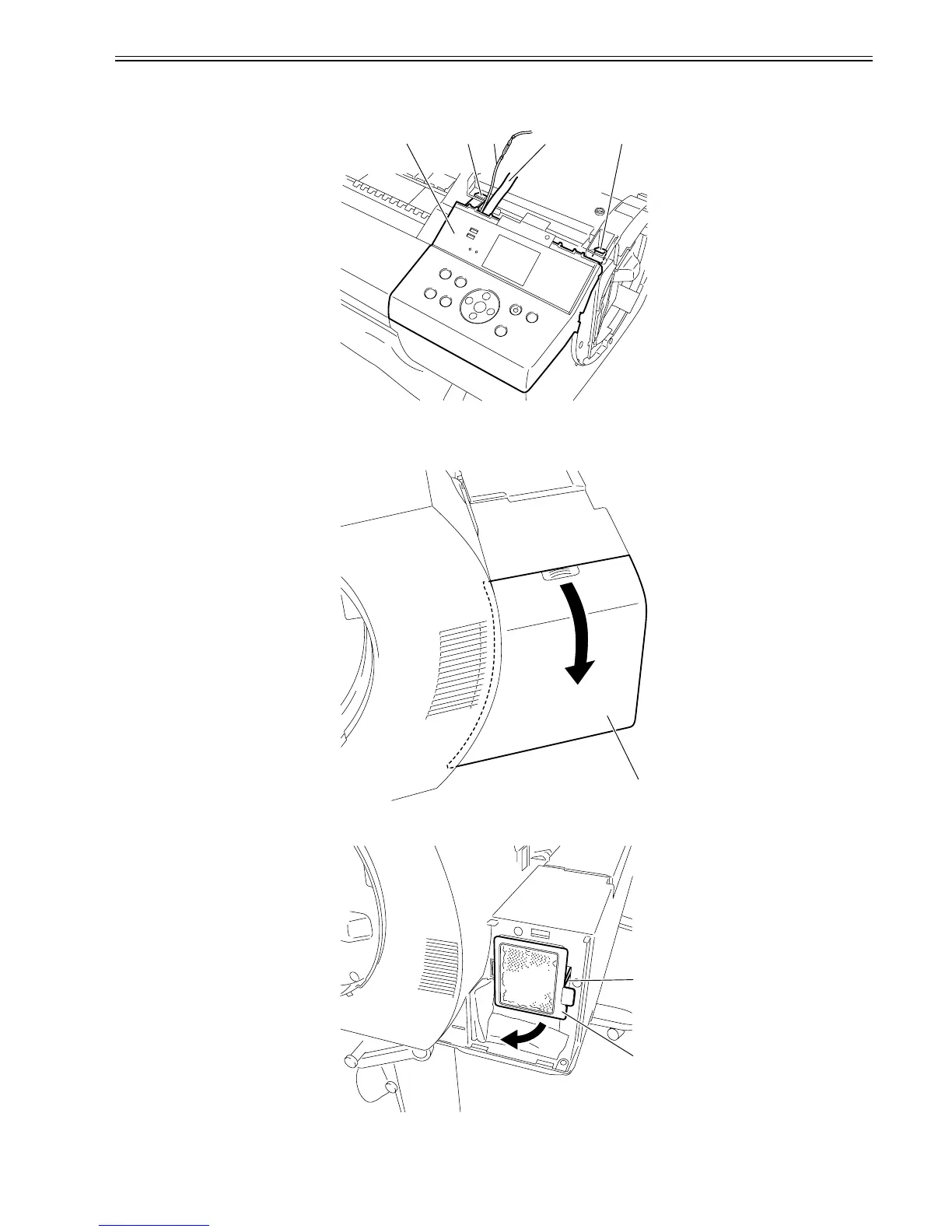 1) When removing the operation panel[4], open the top cover, and then remove the right circle cover and right upper cover.