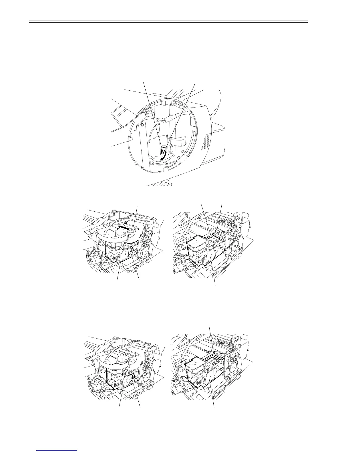 2) To move the wiper unit[3], turn the gear[1] of the purge unit[2] in the direction of the arrow.