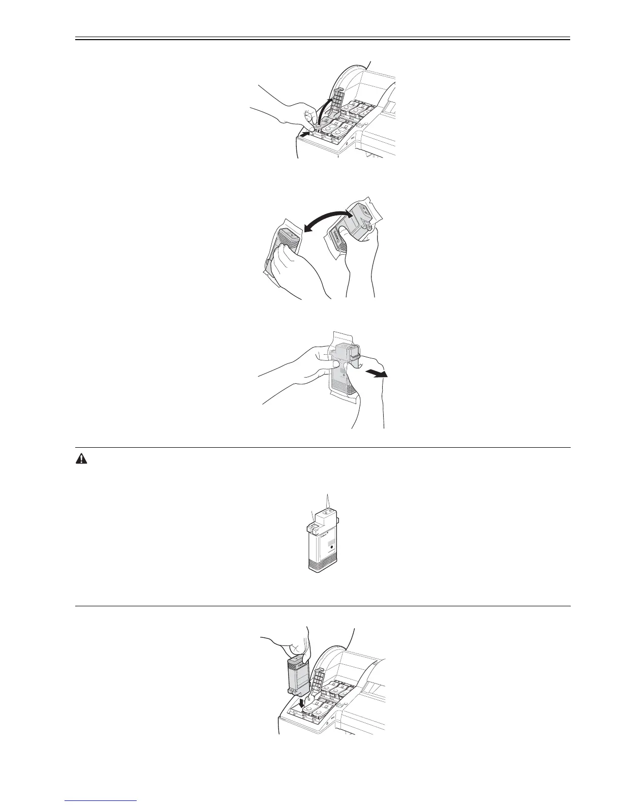 - Do not remove and shake the ink once it is installed. Ink may spatter.