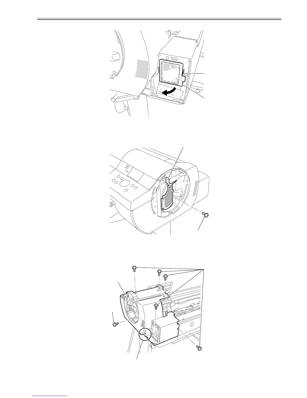 1) When removing the right cover[3], open the top cover, and then remove the roll feed unit, right circle cover, right upper cover, operation panel, mist filter, exhaust