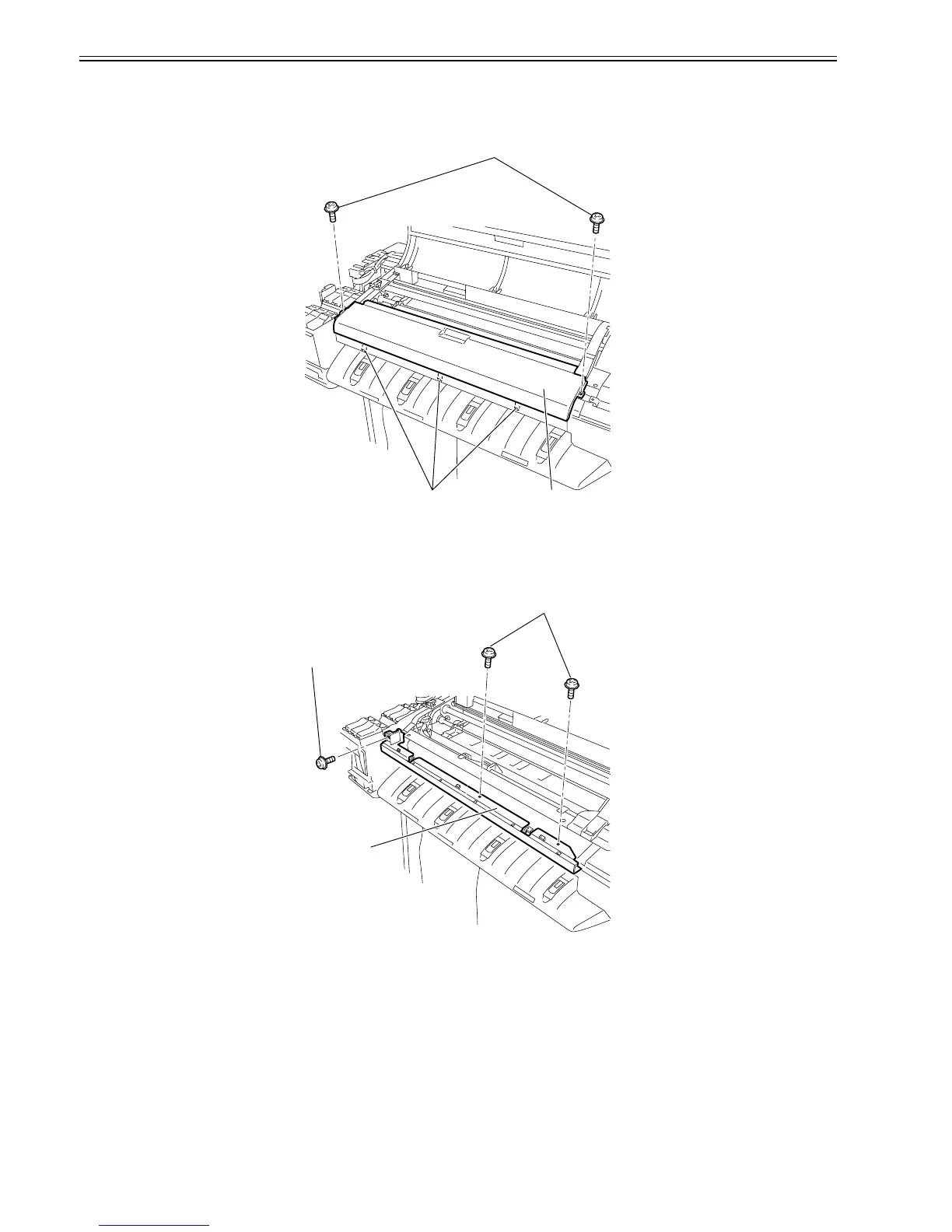 1) When removing the lower front cover[3], open the top cover, and then remove the roll feed unit, left circle cover, tank cover, right circle cover, right upper cover,