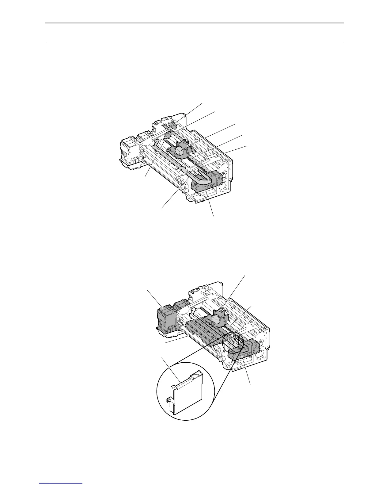 Moving parts of the printer include the carriage unit driven by the carriage motor, the carriage belt, the ink tube, the flexible cable, the feed roller drives the feed