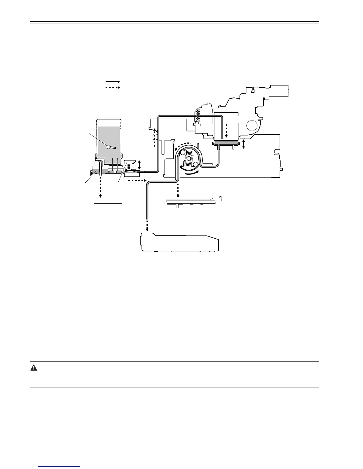 A schematic diagram of the ink passage (for one color) and the ink flow are shown below.