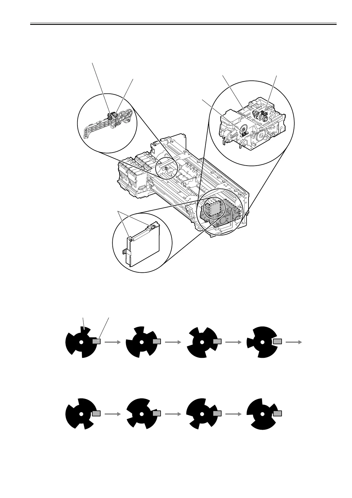 The photo-interrupter-type pump cam sensor detects that the sensor light is shielded or unshielded by the rotary cam. The sensor detects the purge unit capping and
