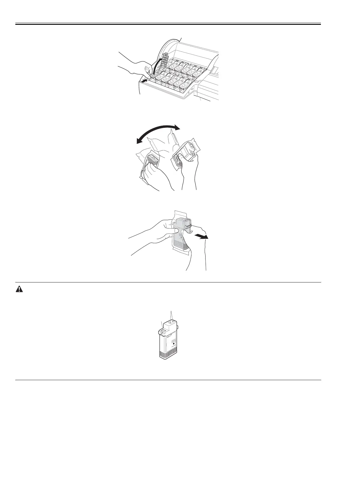 - Do not remove and shake the ink once it is installed. Ink may spatter.