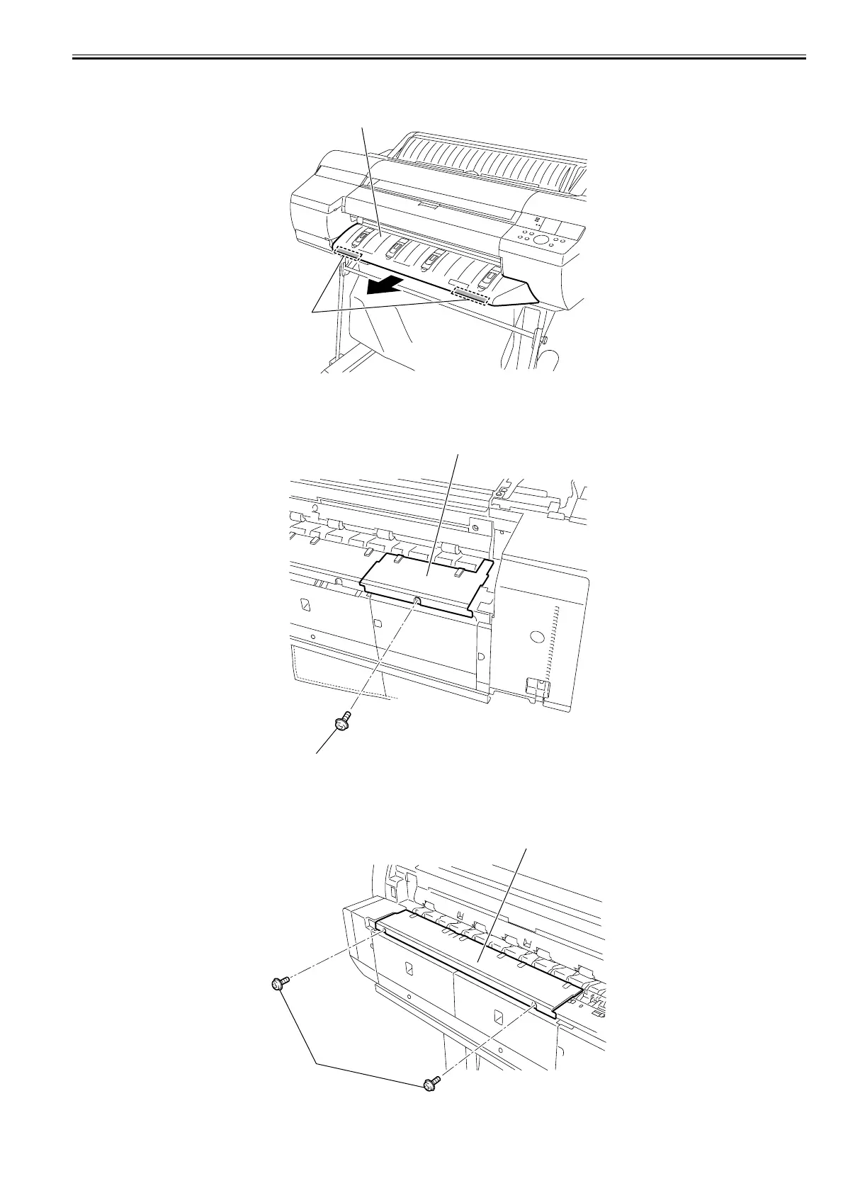 1) When removing the lower rear cover[2], remove the two screws[1] and then remove it.
