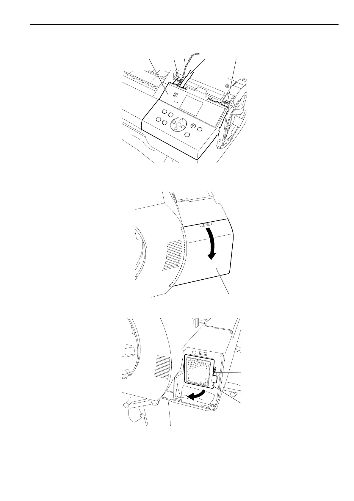 1) When removing the operation panel[4], open the top cover, and then remove the right circle cover and right upper cover.