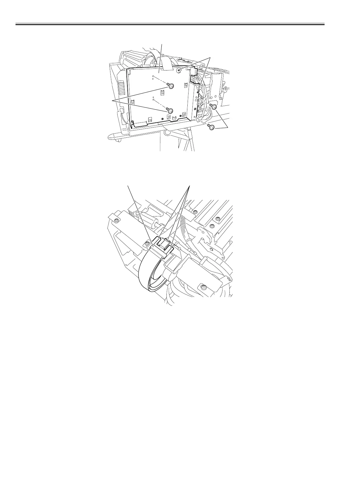 In installing the cable holder, secure ferrite core [1] to the flexible cable on the carriage with the cable holder before hooking the flexible cable from the operation