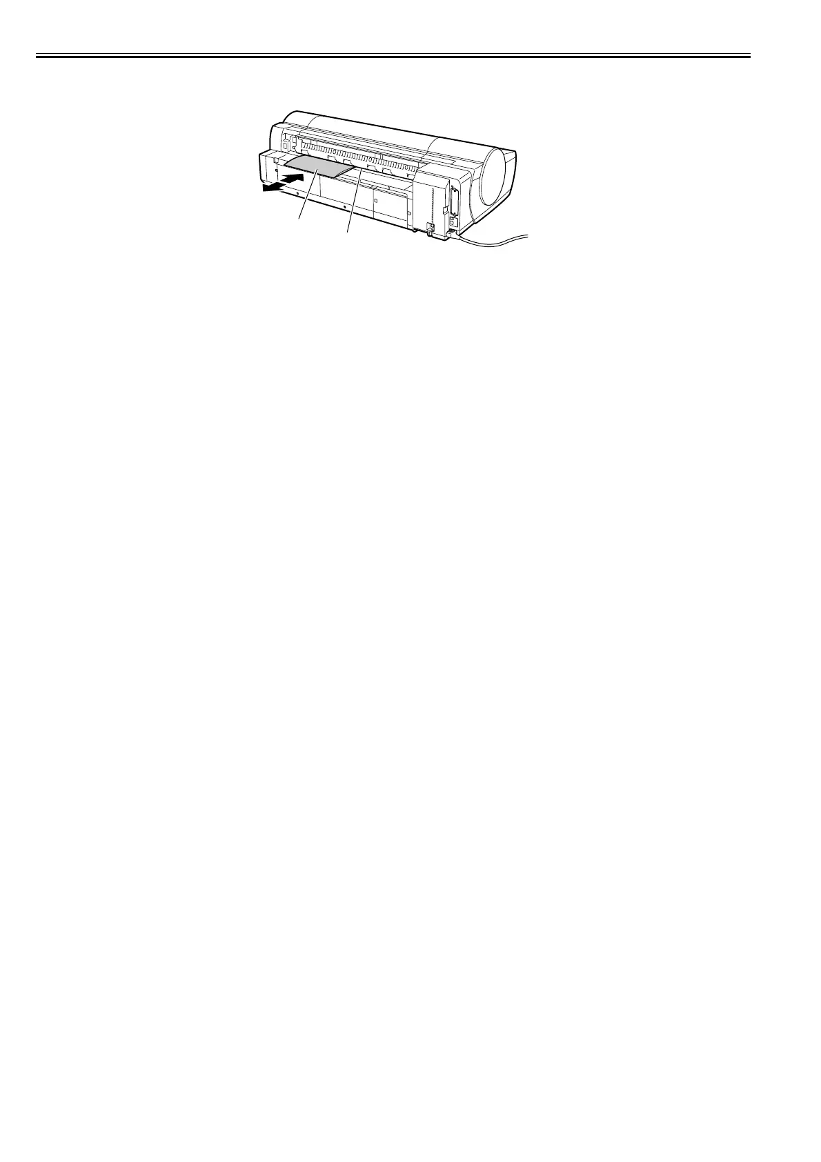 9) Remove the roll feed unit and fold plain paper [1] two to three times and then insert through the printer rear into the underside [2] of the pinch roller unit to wipe