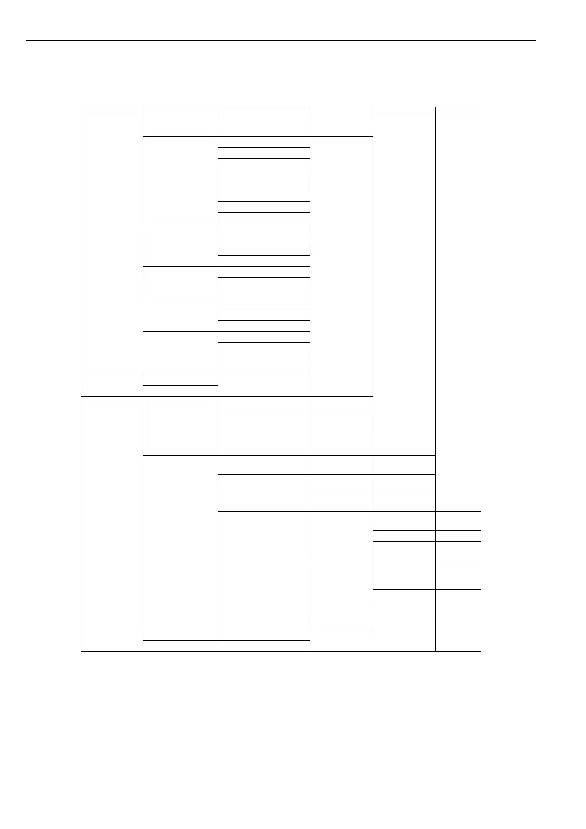 The hierarchy of menus and parameters in the Service Mode is as shown below.