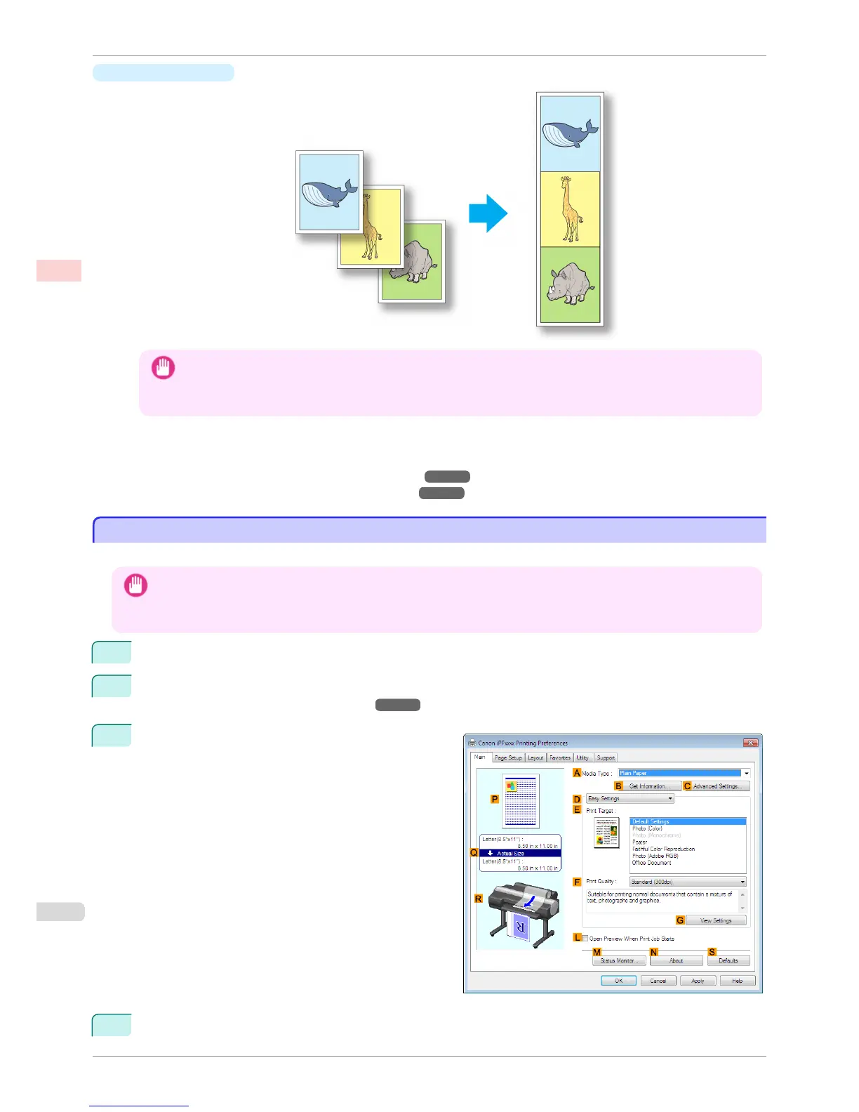 • When using Banner Printing, some of the settings are disabled, including Borderless Printing, Enlarge/Reduce Printing,