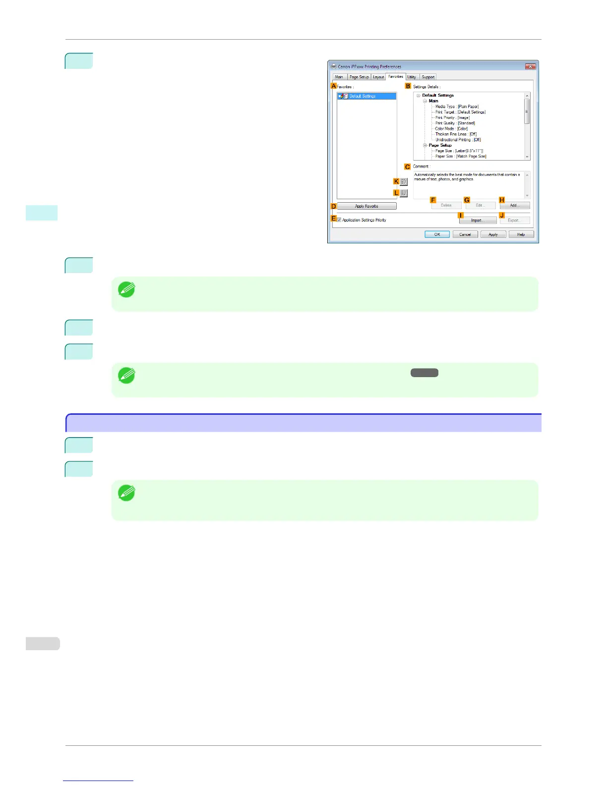 Click D Apply Favorite to replace the favorite settings with the current print settings.
