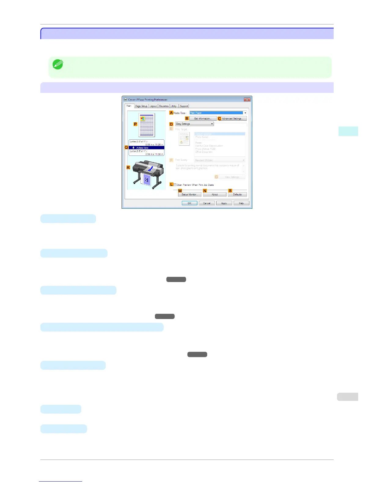 • On the Main sheet, choose Easy Settings to specify basic print settings based on the particular printing application, or