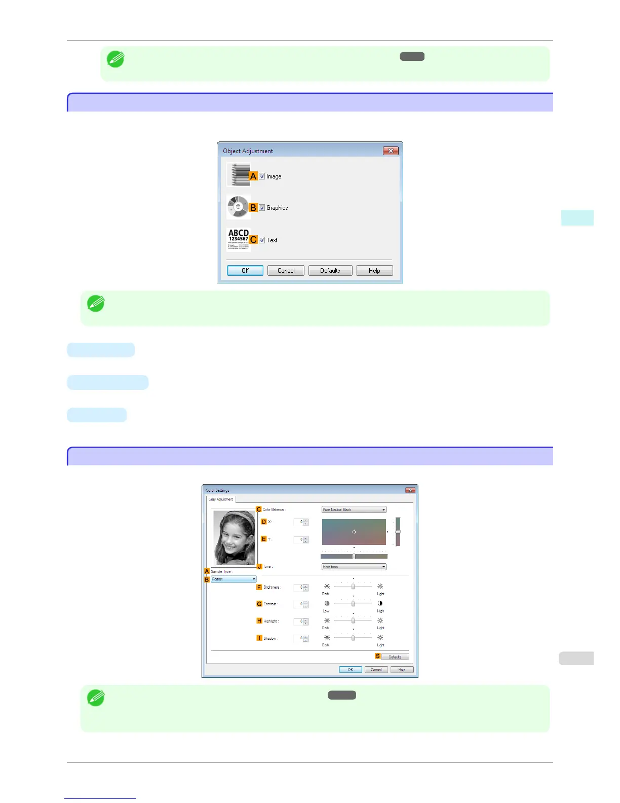 • To display the Gray Adjustment sheet, on the Main Sheet ➔ P.159 , select Monochrome (Photo) by Color Mode in