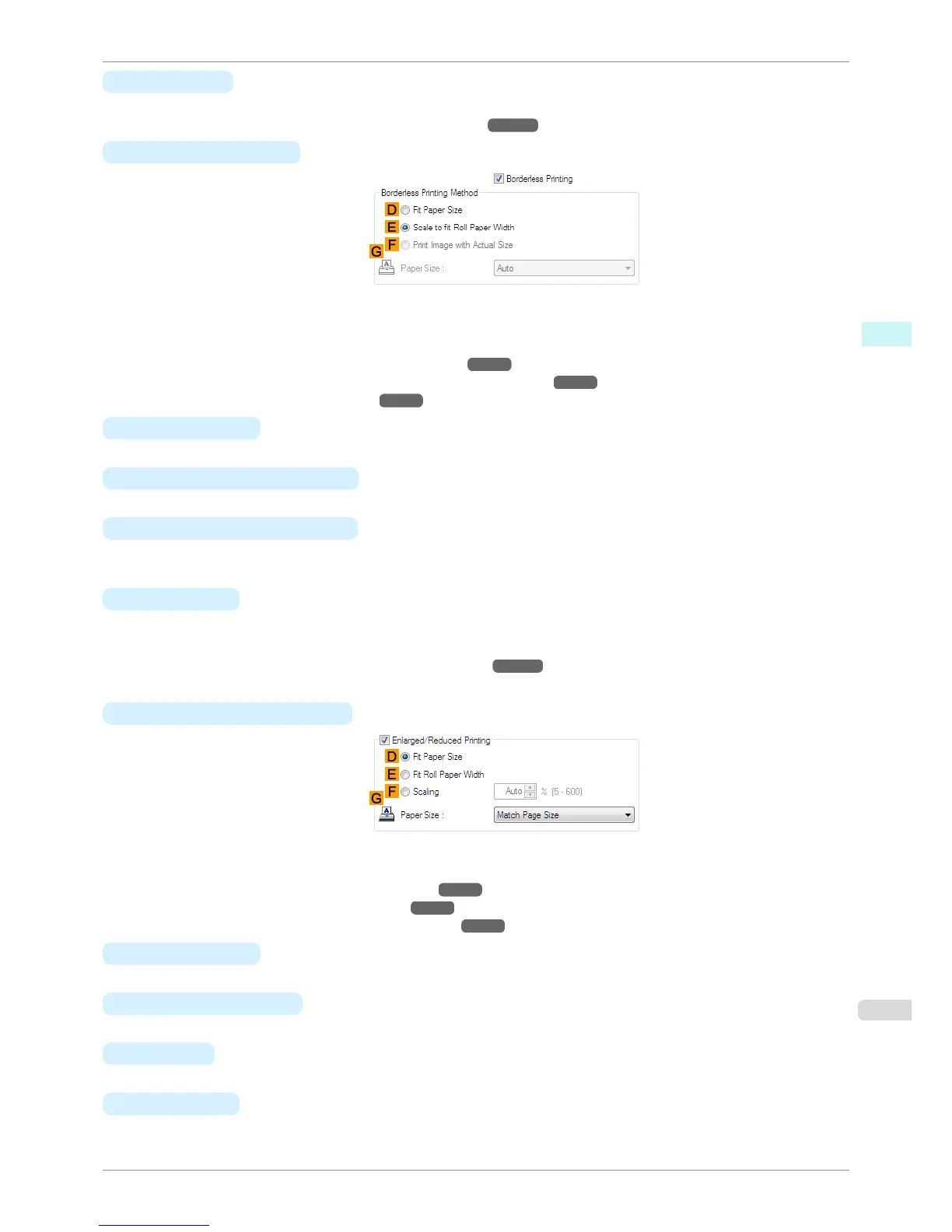 Borderless Printing by Resizing Originals to Fit the Roll Width ➔ P.87