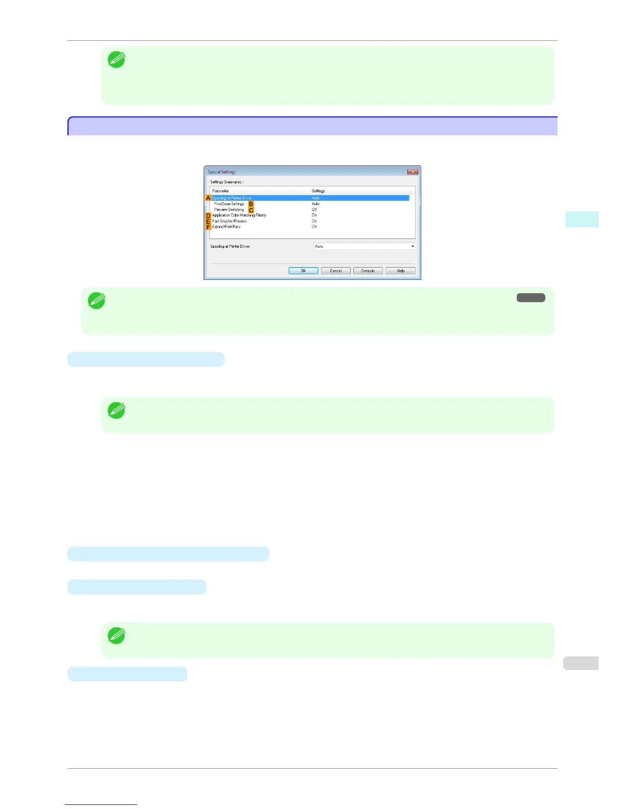 If the printing results are not as you expected, you can change how printing is processed in the Special Settings
