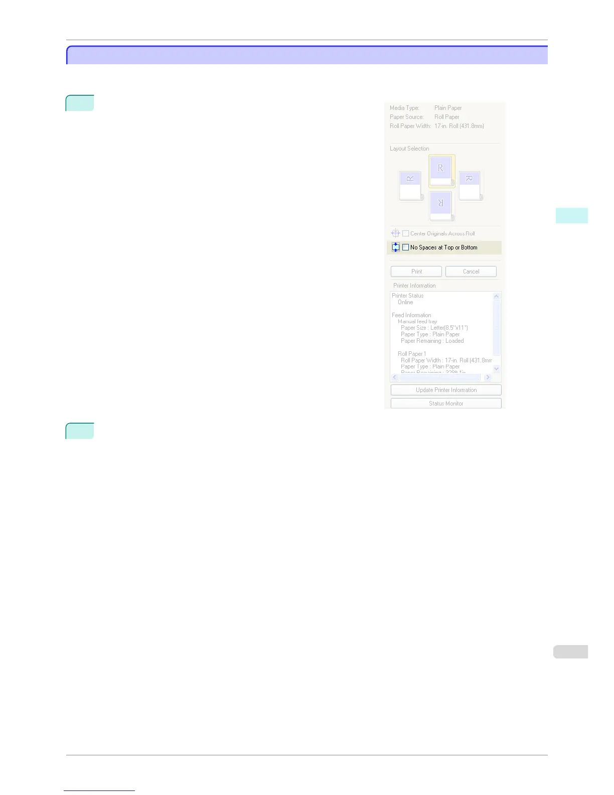 Printing on the settings with no spaces at top or bottom begins.